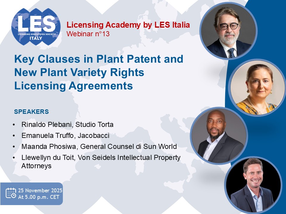 Licensing IP rights in relation to living organisms, like any kind of plants irrespective of their botanic taxon, may present some critical and tricky aspects, since, contrary to the “normal” products, they can reproduce themselves after selling. Pros and cons of clauses drafted to address these important aspects will be discussed bringing the point of view of both the IP experts and the breeders.